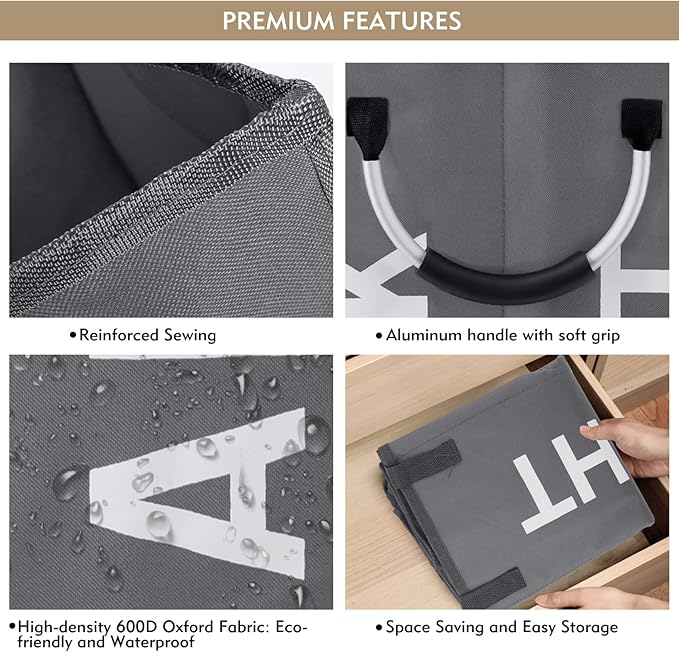 - Two Sections Laundry basket: build-in two compartments that separates DARK and LIGHT clothes.